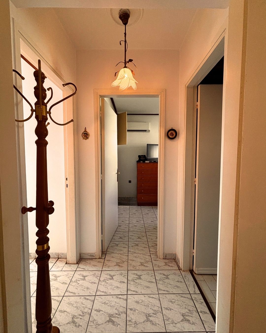 This is a very functional apartment consisting of two bedrooms, one bathroom, a living room, kitchen, and hallway.