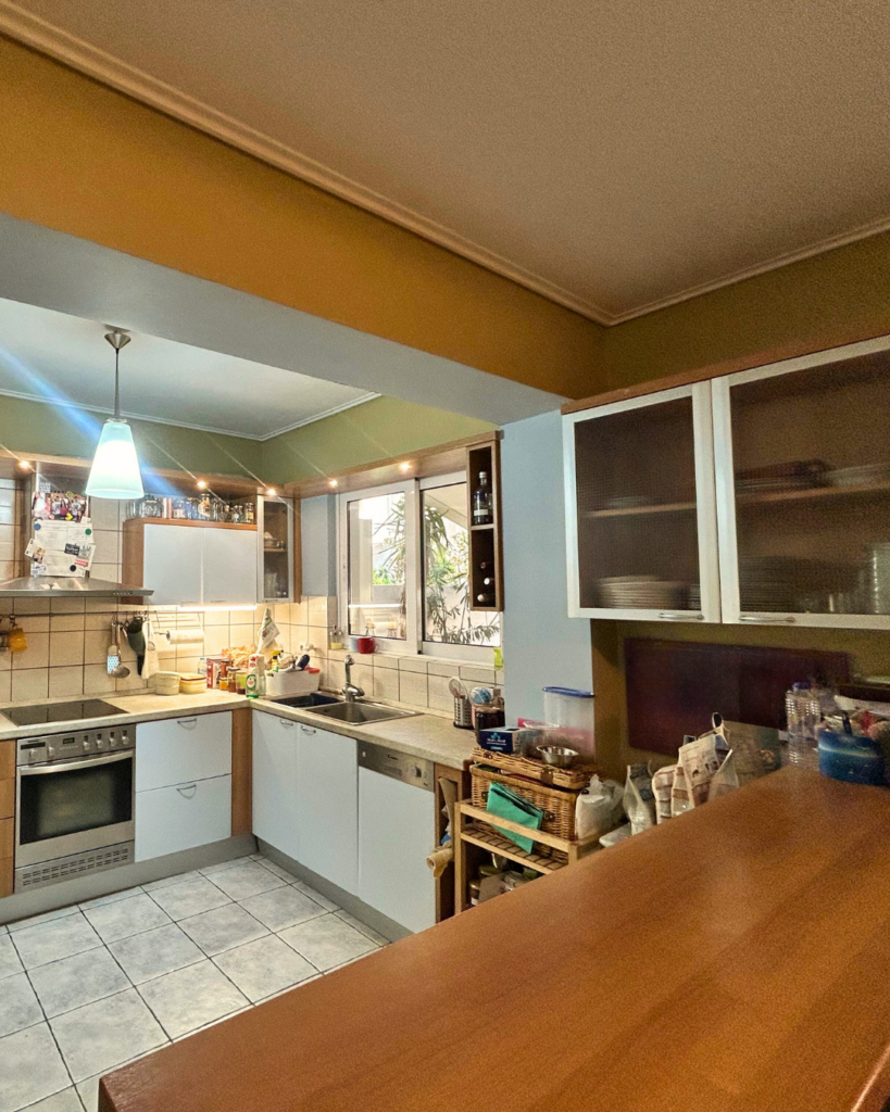 A bright and airy fourth-floor apartment of 136 sq.m. is for sale in a central location of Kaisariani.